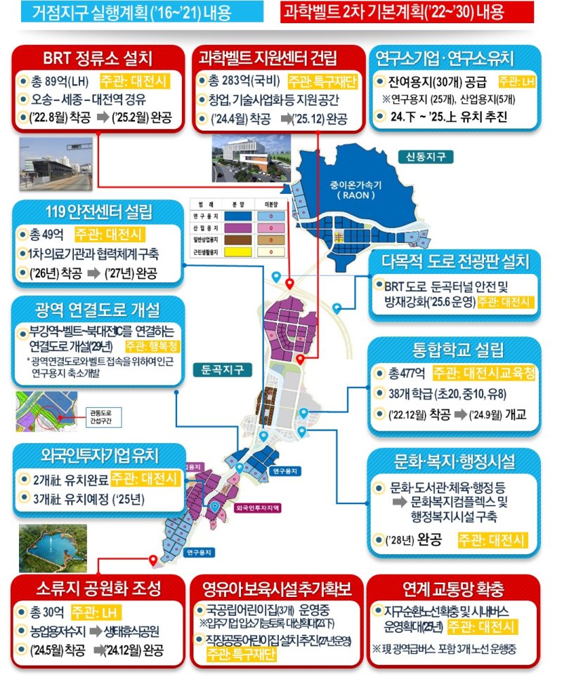 이번 실행계획은 '과학벨트 2차 기본계획'에 따라 진행된다. 1차 기본계획이 인프라 구축 등 기반조성에 중점을 뒀다면 2차 기본계획은 거점지구의 정주 환경(교통·교육·주거)을 고도화한다.