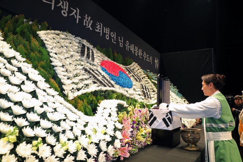 행정안전부는 4일 전남 영광문화예술의전당 1층 대공연장에서 '최병연씨 유해봉환 추도식'을 개최했다. 추도식에는 고인의 유족인 차남 최금수씨를 비롯해 이상민 행안부 장관, 강종만 영광군수 등 200여명이 참석했다.