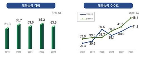 대북 송금 중개 수수료는 계약 기준으로 송금액의 평균 41.8%였지만 실제 청구는 평균 48.1%까지 높게 나타났다.