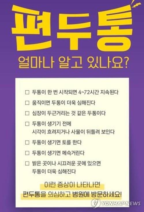 (서울=연합뉴스) 한성간 기자 = 편두통 치료에는 트립탄, 에르고트, 항구토제 계열의 약이 가장 효과가 크다는 연구 결과가 나왔다.