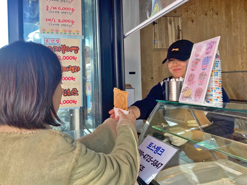 이들은 함께 온 지인들과 메뉴판을 보며 어떤 맛을 골라야 하나 고민을 하는가 하면 주문된 붕어빵이 만들어지기 시작하자 창문을 통해 고개를 내밀고 구경하기도 했다.
