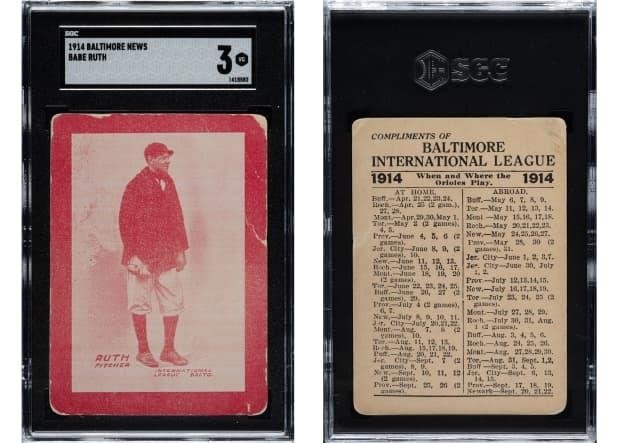 이 카드는 가로 6.7cm·세로 9.2cm 크기로 볼티모어 오리올스 소속으로 프로에 데뷔한 루스의 19세 시절 모습이 담긴 것으로 알려졌다.