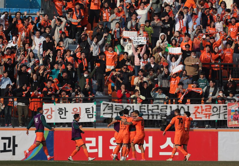 [서울=뉴시스] 김진엽 기자 = 프로축구 K리그1 강원FC가 '돌풍의 팀' K리그2 김포FC를 누르고 잔류에 성공했다.