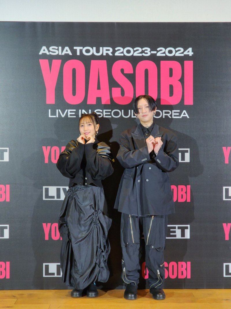 하지만 이 같은 인기에도 요아소비는 차트 성적이나 현재 자신들의 위상에 연연하기 보다는 4년 전 초심을 잃지 않는 데 전력을 다하고 있다. 팀명은 '밤놀이' 또는 '밤에 놀러 다님'을 뜻한다. 밤이 주는 서정과 사색의 시간을 유희로 바꿀 줄 아는 이들은 무엇보다 동심을 지키는 게 최우선이다. 이 덕분에 '아이브(IVE)' 장원영, '르세라핌' 홍은채 등이 '아이돌' 챌린지에 동참하는 등 K팝 스타들로부터 호응을 얻고 있다. 그런데 18일 서울 명동에서 열린 기자 간담회에서 두 멤버는 K팝 스타들은 전부 대단하다며 정작 본인들 몸은 낮췄다. 다음은 이쿠라·아야세가 기자들과 나눈 일문일답.