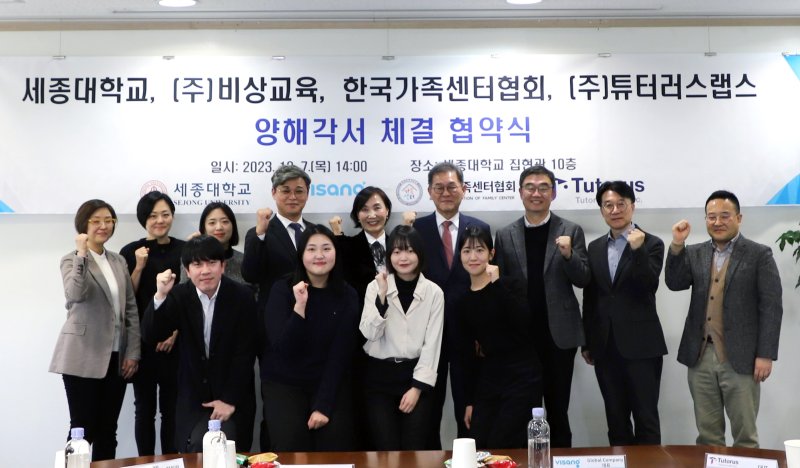 [서울=뉴시스]이주영 인턴 기자 = 세종대학교가 지난 7일 비상교육, 한국가족센터협회, 튜터러스랩스와 업무협약을 체결했다고 18일 전했다.