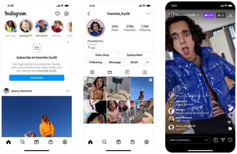 월간 구독료로도 수입을 올릴 수 있게 될 전망이다. 인스타그램 구독 기능을 통해 크리에이터는 구독자에게 릴스, 라이브, 스토리 등 독점 콘텐츠를 제공하며 팬들과 보다 친밀한 상호작용을 나눌 수 있다. 구독 요금은 크리에이터가 설정할 수 있으며, 해당 요금을 지불한 구독자가 남긴 댓글이나 DM(다이렉트 메시지) 옆에는 보라색 왕관 모양의 구독자 배지가 표시돼 일반 이용자와 구분된다.