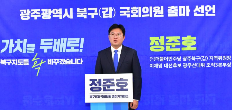 [광주=뉴시스] 송창헌 기자 = '젊은 법조인' 정준호 변호사가 20일 "정권 교체와 인물·세대 교체로 호남 정치 부활에 앞장서고 낙후된 북구의 가치를 두 배로 만들겠다"며 광주지역 대표 거대선거구인 북구 갑 총선 출마를 공식 선언했다.