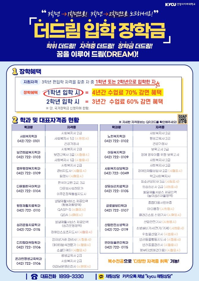 따라서 이번에 개설 된 더드림 입학장학금과 다학점 이수과정을 활용하면 등록금 부담을 줄이면서 4년 학사 학위를 빠르게 취득할 수 있다.