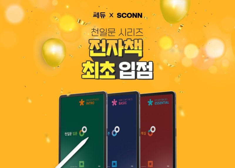 천일문 시리즈는 초중고 영어교육 전문 기업인 쎄듀의 대표 교재이자 누적 판매량 430만 부를 넘어서는 영어 구문 학습 분야의 대표 교재다. 이번에 전자책으로 출간되는 교재는 천일문 입문' '천일문 기본' '천일문 핵심' '천일문 완성' '천일문 트레이닝북'과 새롭게 출간되는 '천일문 고등 Grammar'다.