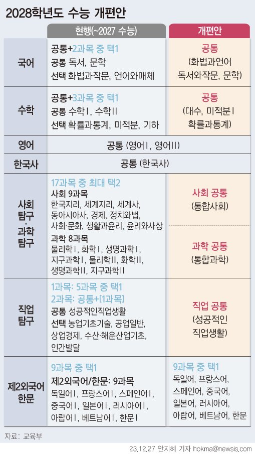 2028학년도 수능 수학부터 현행 문과 범위로