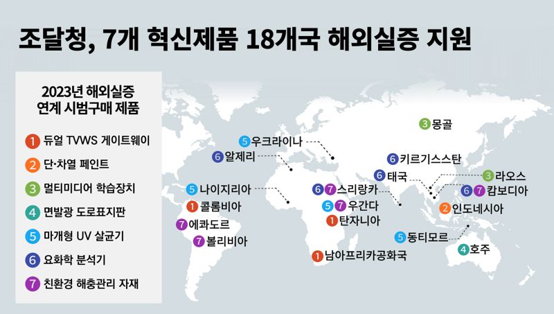 조달청은 올해 코트라(KOTRA) 등 관계기관과 함께 해외 현지 수요를 선제적으로 발굴하고 7개 혁신제품을 선정해 18개국 해외정부 실증을 지원했다.