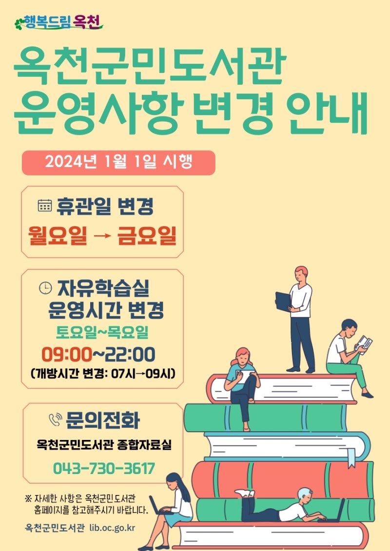 보다 자세한 사항은 옥천군민도서관(043-730-3617)으로 문의하면 된다.