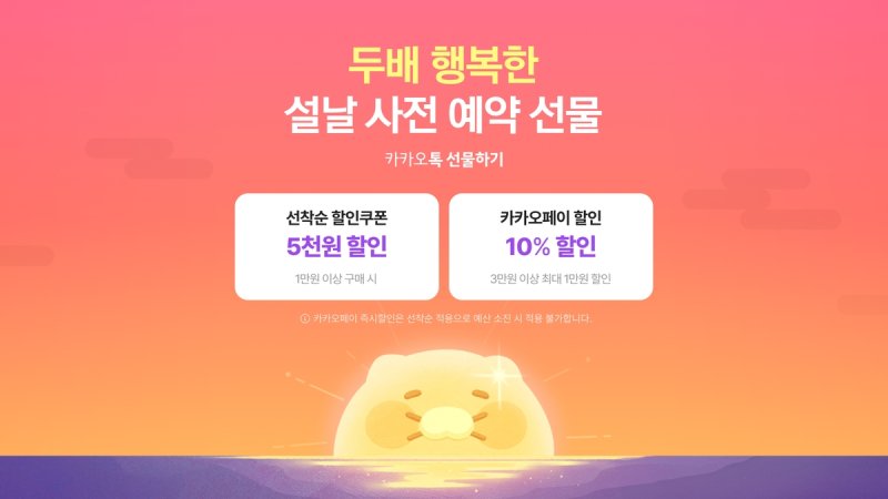 (서울=연합뉴스) 최현석 기자 = 카카오[035720]는 카카오톡 선물하기가 오는 21일까지 '설 선물 사전 예약 프로모션'을 진행한다고 8일 밝혔다.