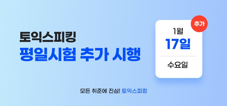 토익스피킹 추가 시험은 17일 오후 6시30분에 시행하고 성적은 23일 발표한다. 신청은 14일 오전 10시까지 토익스피킹 누리집과 YBM 어학시험 애플리케이션에서 할 수 있다.