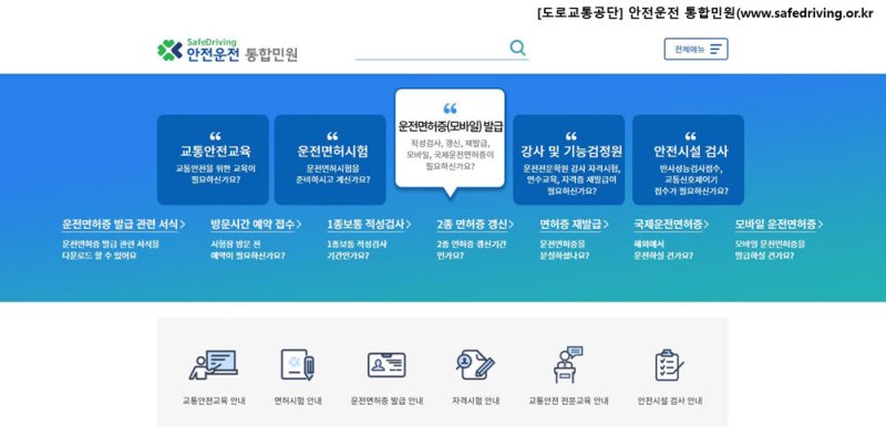 온라인 수검은 도로교통공단 안전운전 통합민원을 통해 신청 가능하다.