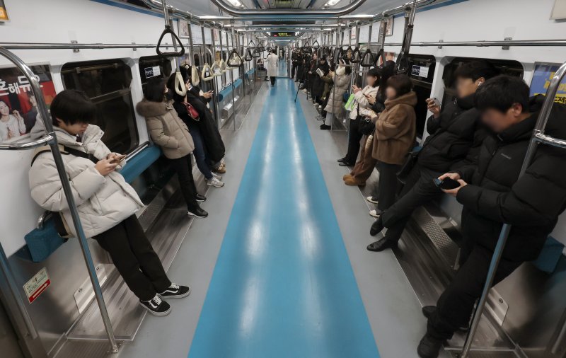 이날 오전 사당행 지하철 4호선 의자 없는 칸에 탑승한 시민들은 손잡이를 잡거나 열차 벽면에 기댄 채 지하철을 이용했다.