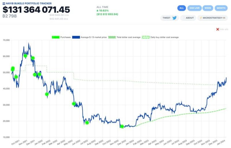 부켈레 대통령은 지난해 12월 비트코인의 가격이 오르자 소셜미디어 X(옛 트위터)에 "비트코인으로 큰 수익을 봤지만 우리는 비트코인을 매각할 계획은 없다"라며 "이후에도 비트코인의 가격이 계속 변동할 것이라는 점은 잘 알고 있으며 이는 우리의 장기적인 투자 계획에 영향을 주지 않을 것"이라고 밝힌 바 있다.