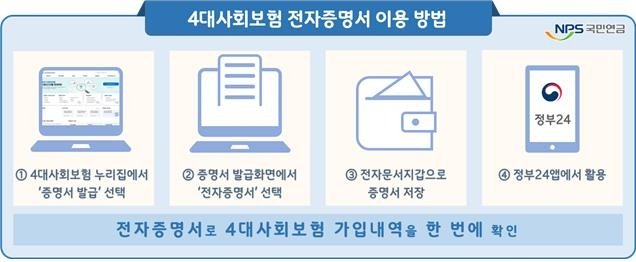 전자증명서는 '4대사회보험정보연계센터' 홈페이지(www.4insure.or.kr)에서 신청할 수 있다.