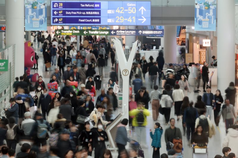 [인천공항=뉴시스] 조성우 기자 = 인천국제공항의 하루 이용객 수가 코로나19 이후 4년 만에 20만 명을 넘어섰다. 인천공항공사에 따르면 지난 14일 인천공항의 일일 여객이 20만2554명으로 잠정 집계했다. 이는 코로나19 펜데믹 영향으로 인천공항의 이용객이 20만 명 이하로 떨어진 지난 2020년1월27일(20만948명) 이후 만 4년 만이다. 16일 오후 인천국제공항 제1여객터미널 면세구역이 인파로 북적이고 있다. 2024.01.16. xconfind@newsis.com [서울=뉴시스] 류현주 기자 = 인천국제공항공사는 2020년 1월 27일 이후 만 4년 만에 일일 여객 20만명을 돌파했다고 16일 밝혔다.