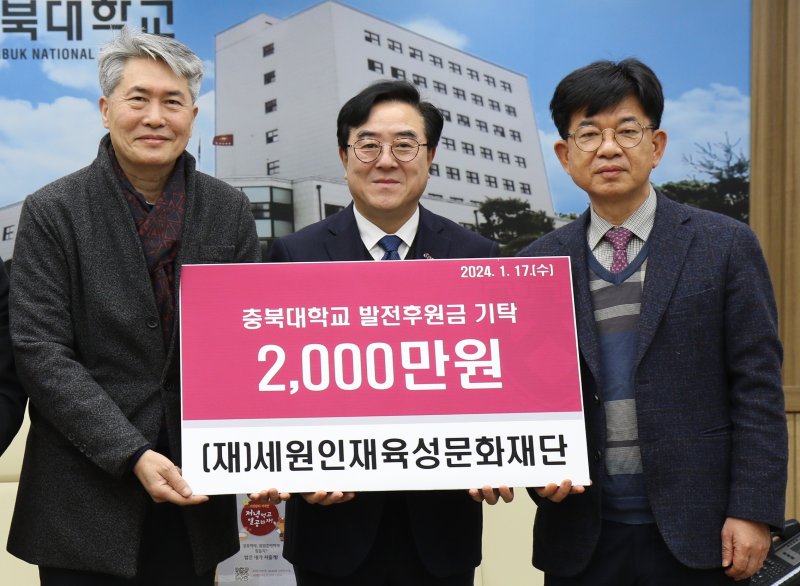 (청주=뉴스1) 이성기 기자 = 충북대학교는 세원인재육성문화재단(이사장 이하나)이 장학기금 2000만원을 기탁했다고 17일 밝혔다.