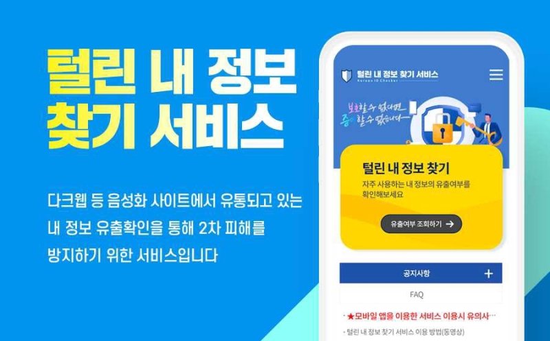 '털린 내 정보 찾기'는 다크웹 등 음성화 사이트에서 이용자의 정보가 불법유통 됐는지를 조회할 수 있는 서비스다.