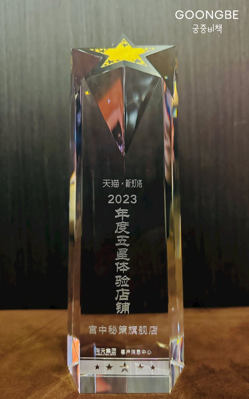 궁중비책 브랜드관은 △품질 만족도 △구매 리뷰 △서비스 만족도 △인지도 △물류 등 총 8개의 평가 항목에서 모두 별 5개 만점을 받았다. 전체 30만여 개의 스토어 중에서 약 0.05%에 해당하는 160개 점포만이 이 상을 수상했다. 국내 브랜드로는 유일하게 궁중비책이 이름을 올리는 쾌거를 이뤘다.