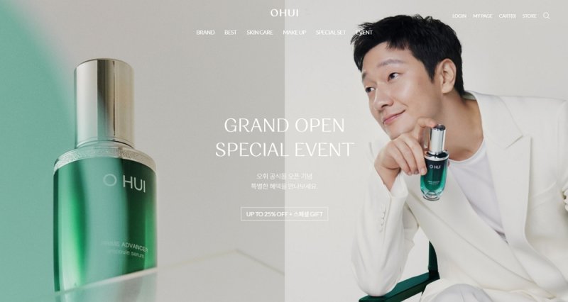 럭셔리 뷰티 브랜드 오휘의 경우 단품보다 세트 제품의 고객 선호도가 높음을 감안해 '스페셜 세트' 카테고리를 메인 메뉴로 배치하는 한편, 이벤트 배너도 쇼핑몰 곳곳에 배치했다.