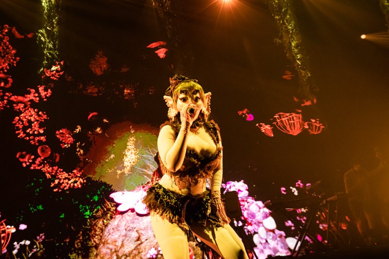 21일 오후 서울 강서구 KBS아레나서 첫 내한공연을 펼친 미국 싱어송라이터 멜라니 마르티네즈(29·Melanie Martinez)는 그 거미줄에 먹히지 않겠다는 일념으로 몸부림쳤다.