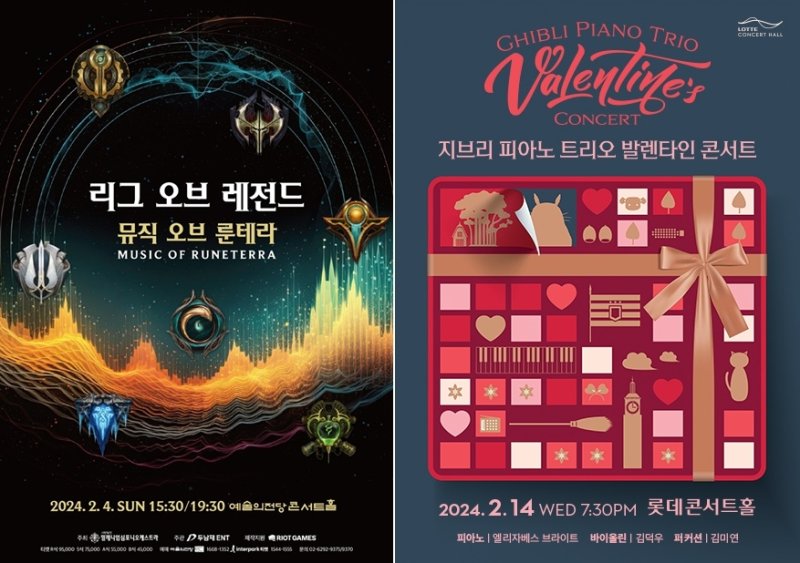 롯데콘서트홀은 밸런타인데이인 다음 달 14일 일본 애니메이션 명가인 지브리 작품에 쓰인 음악을 피아노 트리오로 만날 수 있는 '발렌타인 콘서트'를 연다.
