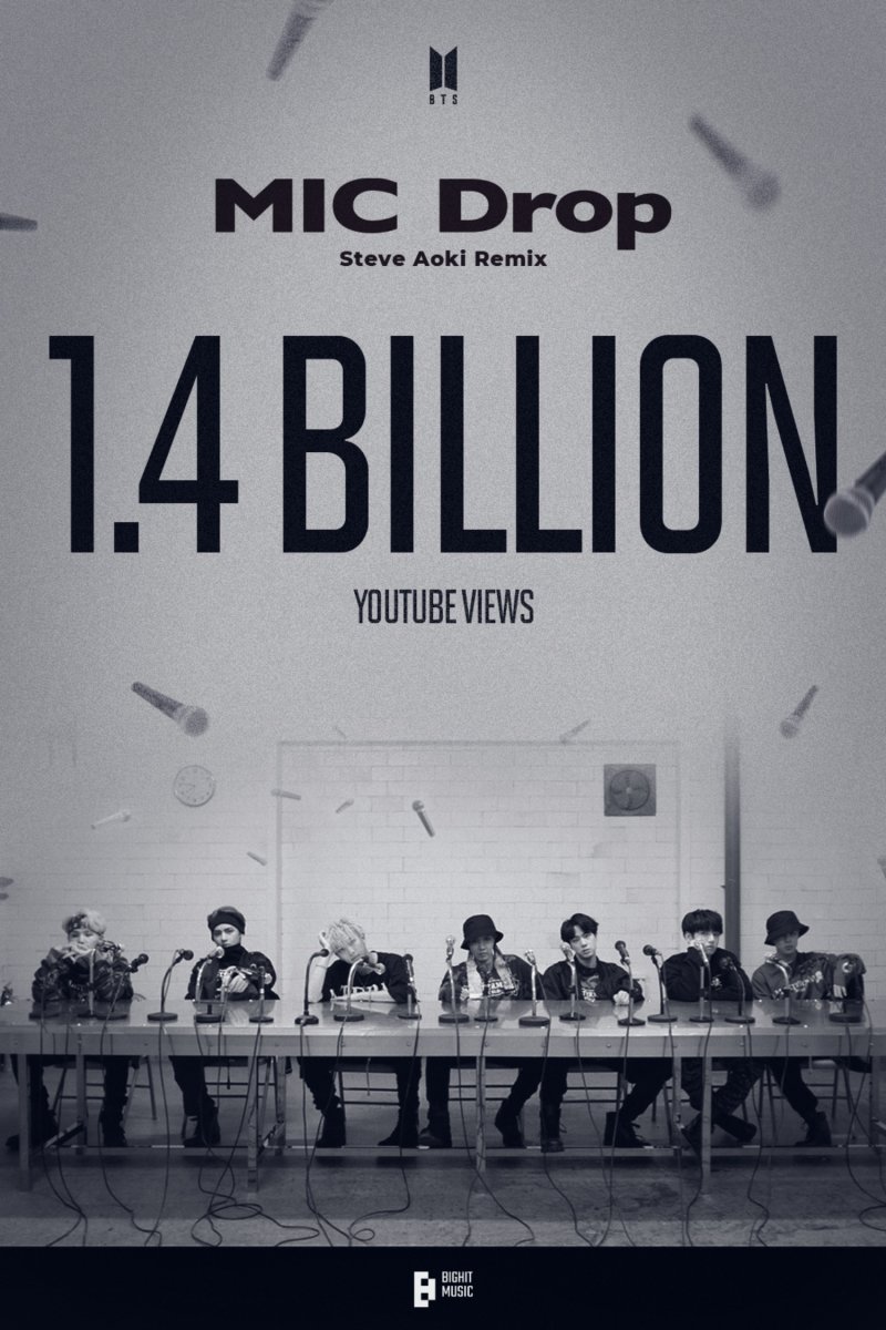 26일 소속사 빅히트 뮤직에 따르면, 지난 2017년 11월24일 하이브 레이블즈 공식 유튜브 채널에 공개된 방탄소년단의 '마이크 드롭(MIC Drop)(Steve Aoki Remix)' 뮤직비디오 조회수가 이날 오전 12시56분께 14억 건을 넘었다. 방탄소년단 통산 네 번째 14억뷰 뮤직비디오다.