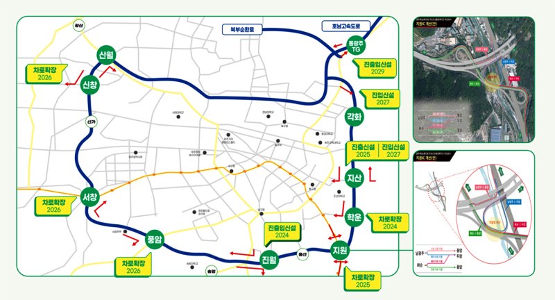 각화동~제2순환도로와 호남고속도로~북부순환도로는 진출입가 개설되며 학운·진월IC 나들목 개선 공사도 완료할 예정이다. 지원·지산IC는 2025년, 풍암·서창·신창IC는 2026년까지 마무리된다.