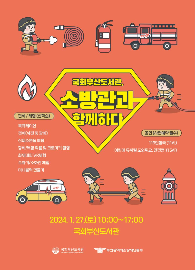 [부산=뉴시스]권태완 기자 = 국회부산도서관은 부산소방재난본부와 함께 27일 오전 10시부터 오후 5시까지 '국회부산도서관, 소방관과 함께하다' 행사를 선보인다.