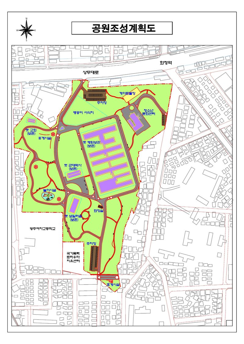 시에 따르면 화정근린공원은 옛 국군 광주병원이 전남 함평군으로 이전하면서 2007년 공원으로 추가 지정된 지역에 조성한다.