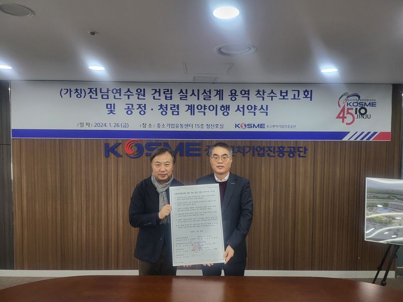 29일 중소벤처기업진흥공단에 따르면 이날 행사는 전남연수원 실시설계 계획 착수보고와 청렴도 제고를 위한 공정하고 청렴한 계약 이행을 서약하고자 마련됐다. 조한교 중진공 인력성장이사, 수행사인 에스파스건축사사무소 등 7개사를 비롯한 20여명이 참석했다.