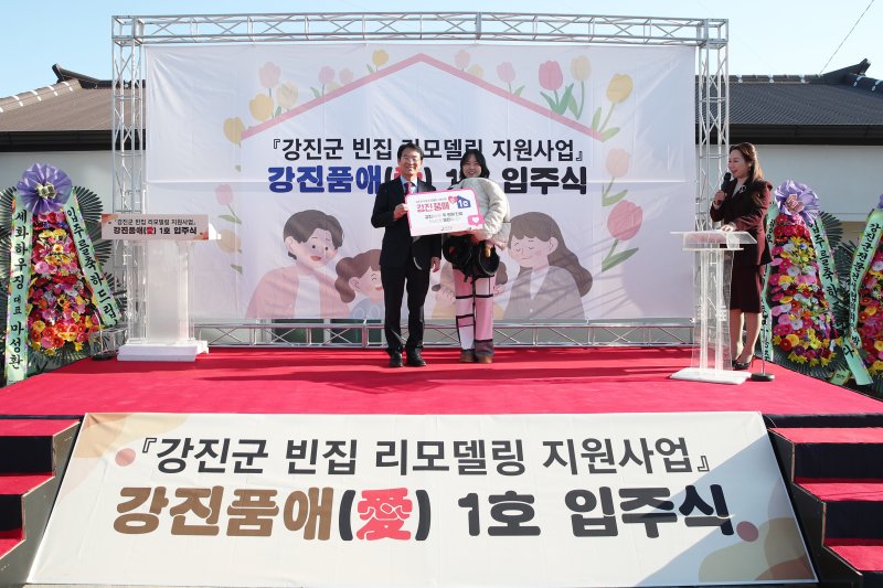 전남 강진군의 빈집리모델링 사업과 육아수당 정책의 결실로 '강진품애' 1호 가족이 입주했다.