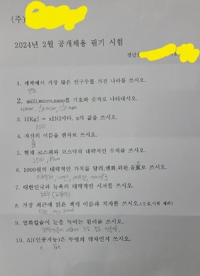 이에 대한 누리꾼들의 의견은 극명히 갈렸다 "옛날에는 상식책을 따로 사서 공부했는데 요즘은 그런 것도 안하나보다" "이런 사람들을 걸러내는 것이 진정한 취업 시험의 목표이다"라는 의견도 있는 반면 "중소기업이 이 정도면 취업 어떻게 하냐" 등의 의견도 있었다.