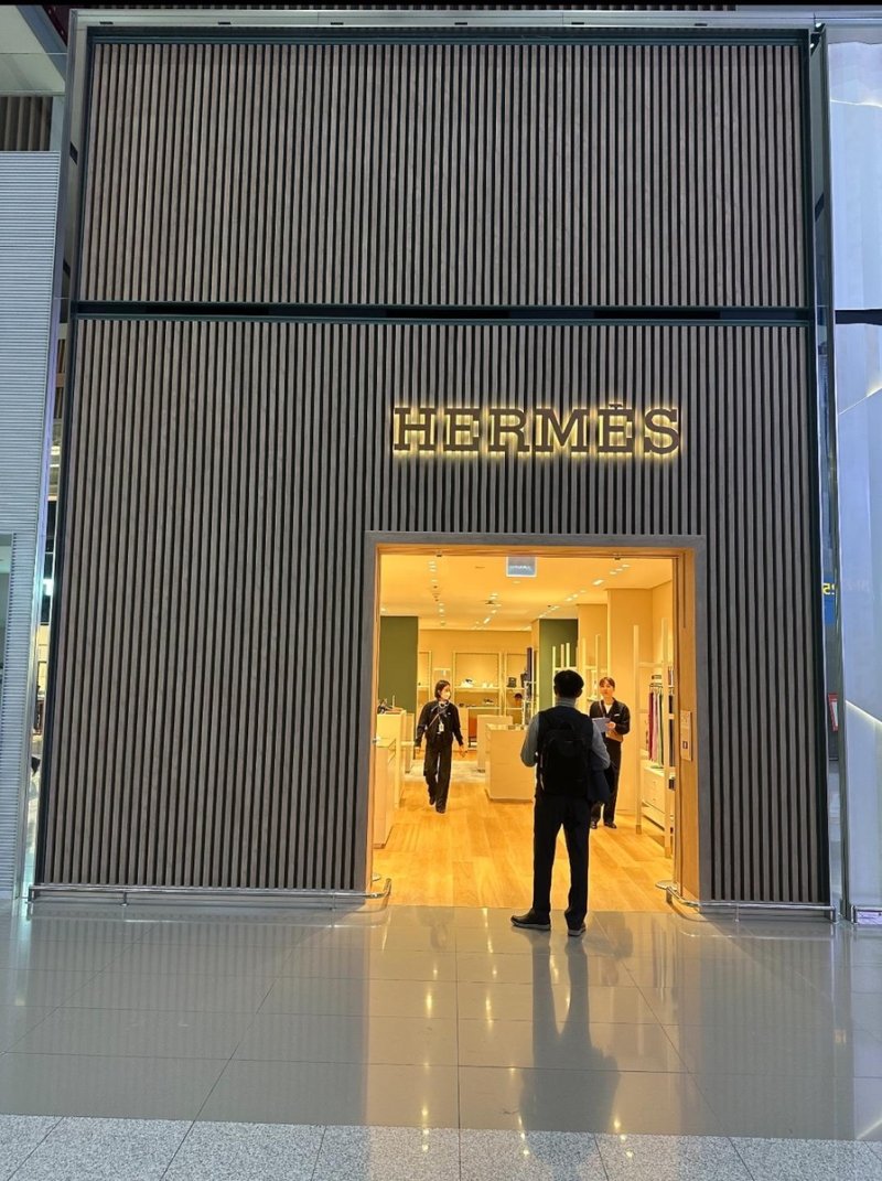 작년 6월까지 인천공항 1터미널과 2터미널에 각각 에르메스 매장을 운영했으나 7월에 면세점 사업자 변경으로 사업 구역이 바뀌었다.