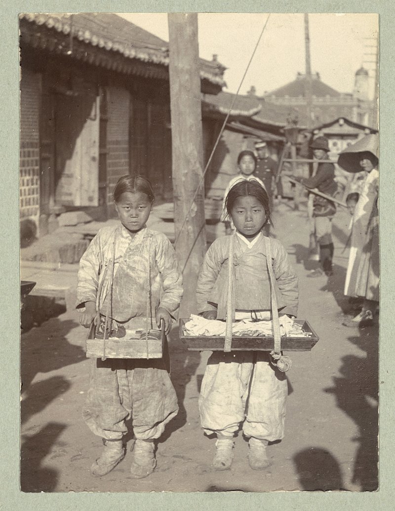 [서울=뉴시스] 최동준 기자 = 서울역사박물관은 12일 학술총서19 '미국 의회도서관 소장 서울 사진: 네 개의 시선'을 발간했다. 제1장 '조지 C. 포크 컬렉션', 제2장 프랭크 G. 카펜터 컬렉션', 제3장 '무라카미 텐코 컬렉션', 제4장 뉴욕 월드 저널 트리뷴의 사진을 엄선해 담았다. 사진은 1911년 이전 종로 2가에서 엿 파는 아이들 모습. (사진=서울역사박물관 제공) 2024.02.12. photo@newsis.com [서울=뉴시스]최동준 이수지 기자 = 조선시대 말기부터 1960년대까지 서울의 모습이 담긴 사진 163점이 공개됐다.