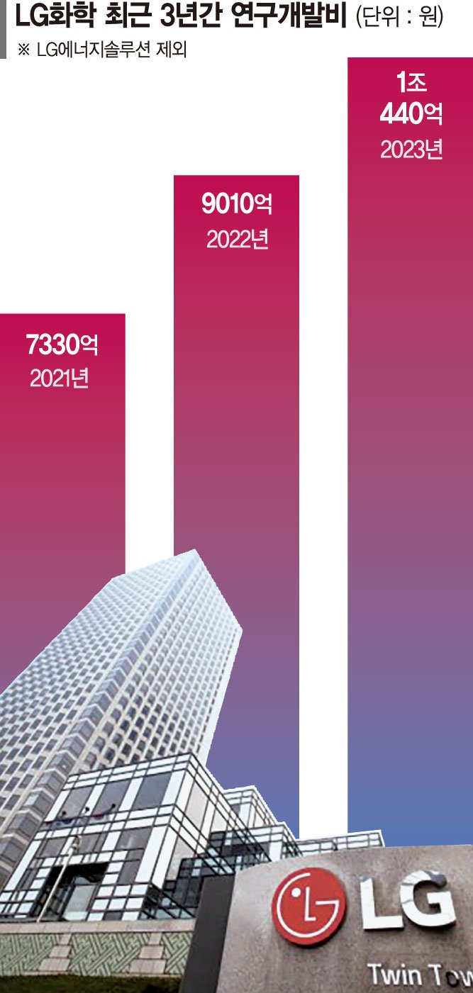 14일 관련 업계에 따르면 LG화학이 지난해 LG에너지솔루션 부문을 제외하고 R&D에 투자한 금액은 1조440억원이다. 전년도 9010억원과 비교하면 15.9%, 2021년 7330억원과 비교하면 42.4% 늘어난 규모다.