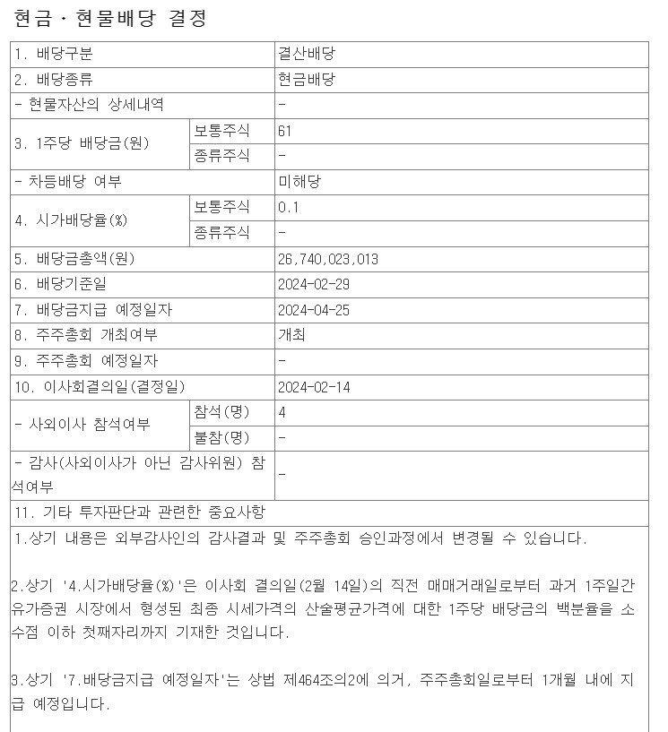 배당금은 4월25일 지급 예정이다.