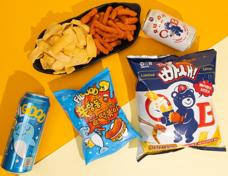 ▲ 해태제과가 오비맥주와 손잡고 'The빠새 간장새우맛'(24만개)과 '신당동 불떡볶이'(38만개)를 한정 출시했다. '홈술'과 '혼술' 트렌드에 맞춰 맥주에 곁들일 어른용 과자다.