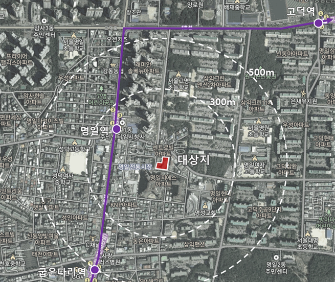 해당 사업은 명일역에서 도보 3분 거리, 반경 200m에 위치해 있는 명일1동 주민센터 부지를 복합개발하는 것이다. 사업계획승인을 받아 추진 중이었으나, 서울시 임대주택 혁신방안에 따른 품질 혁신을 위해 전용면적 확대 등 사업계획을 변경했다.
