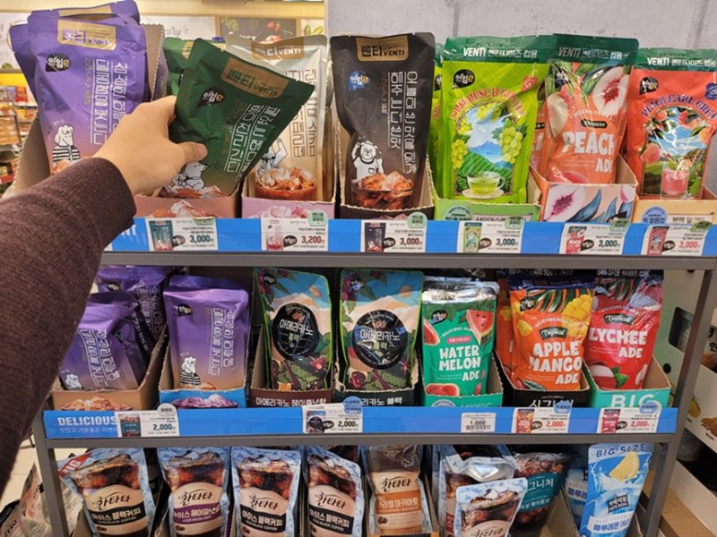 과거 커피 중심이었던 편의점 파우치음료 시장은 차를 포함한 에이드 상품군이 확대되고 있다.