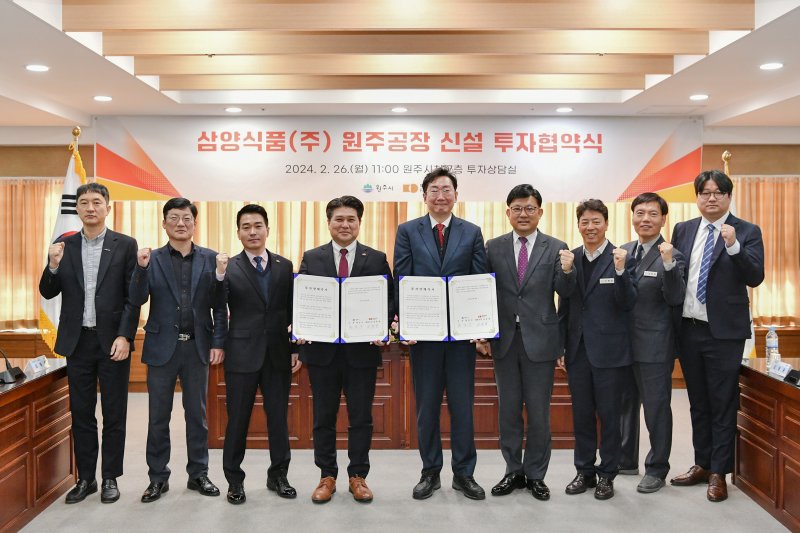 원강수 시장은 “협약은 지역과 기업이 동반 성장하는 상생의 발판이 될 것”이라며 “삼양식품의 공장 신설이 차질 없이 진행될 수 있도록 행정적인 지원을 아끼지 않겠다”고 말했다.