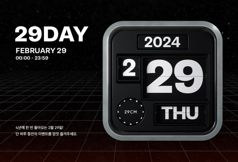 29CM 관계자는 "4년에 한 번 돌아오는 2월 29일을 맞아 29CM 고객만을 위한 재미있는 이벤트를 기획하고자 했다"며 "평소 눈여겨보았던 제품을 29일 하루 동안 특별한 혜택과 함께 만나는 기회가 되기를 바란다"고 말했다.