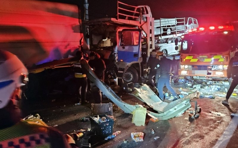 1일 오전 0시 25분쯤 중부고속도로 서울 방향 청주 오창톨게이트 인근에서 탑차, 택시, 자동차 운반차량 등 차량 5대가 추돌했다.