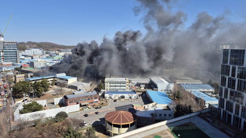 [천안=뉴시스]박우경 기자 = 1일 오전 8시 57분께 충남 천안시 백석공단 내 자동차 부품 공장에서 발생한 불이 4시간여 만에 잡혔다.