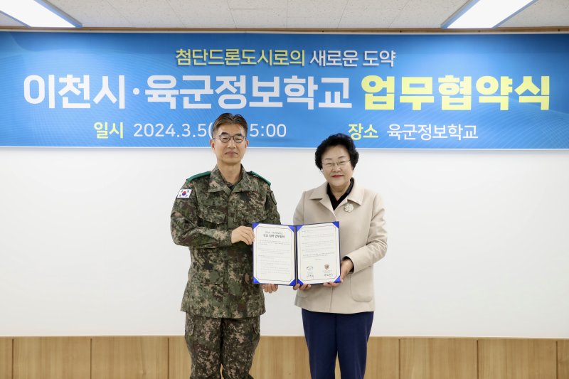 이날 협약식에서 김경희 이천시장과 지원정 육군정보학교장은 이천시 드론산업 및 지역발전이라는 공동목적을 위한 협력체계를 유지하기로 했다.