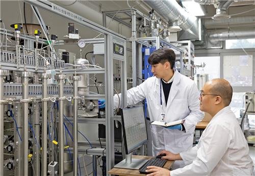 (대전=연합뉴스) 정찬욱 기자 = 한국에너지기술연구원은 청정연료연구실 박종호 박사 연구진이 블루수소 생산의 핵심인 이산화탄소 포집 핵심 소재와 공정 기술을 개발해 포집 비용을 절반으로 낮추는 데 성공했다고 7일 밝혔다.