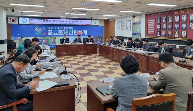 12일 고창군청에서 열린 '전북특별자치도 특례대응 전략회의'를 주재한 김철태 부군수는 "전북특별자치도 출범에 따른 전북특별법을 활용해 고창군 발전을 이끌어갈 특화사업을 적극적으로 발굴해야 한다"고 강조했다.